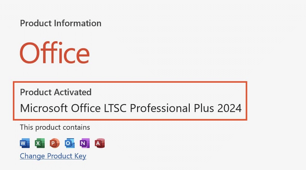 After the key is verified, Office 2024 Professional Plus will be fully activated and ready to use.