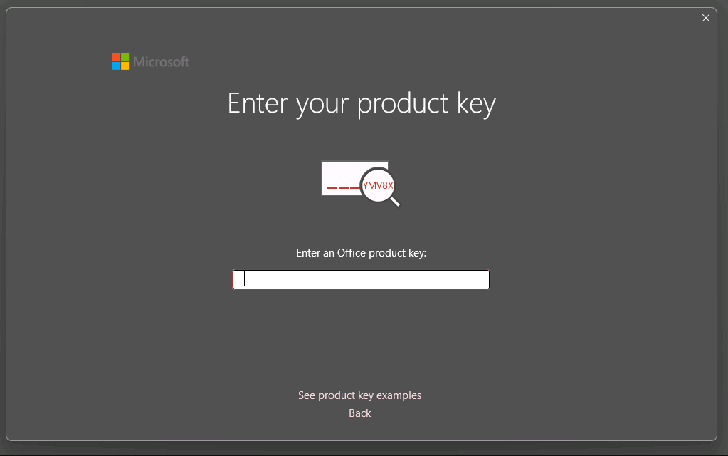 When prompted to activate Office, enter the license key you received after purchase and click Activate.